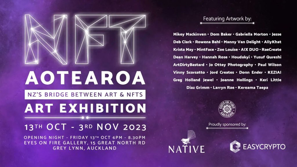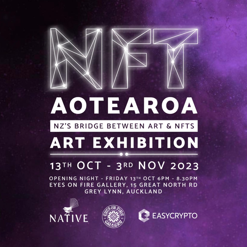 Returning to Auckland at the Eyes On Fire Gallery for 2023 The NFT event of the year in Aotearoa! Bridging the gap between traditional art and NFTs