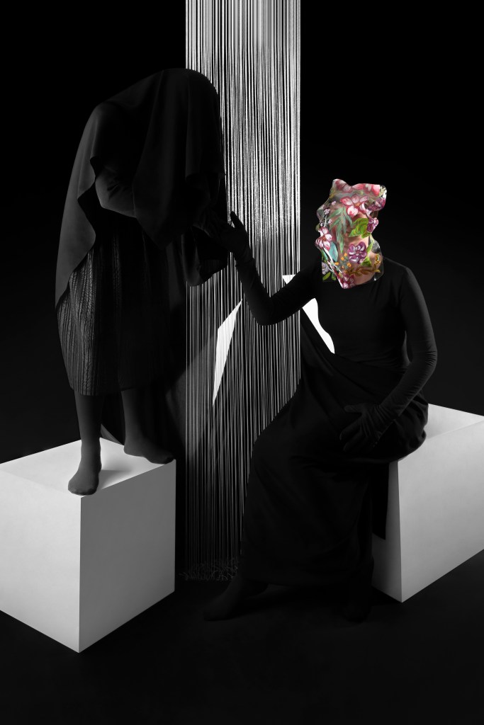 “SHIRINcollection is a staged Photography of the classic poetry of Khosrow and Shirin by NizamiGanjavi(1141–1209AD)who explored the concept of love from culture and time in my geography. lines are made with thread. Faces are covered with painted masks”